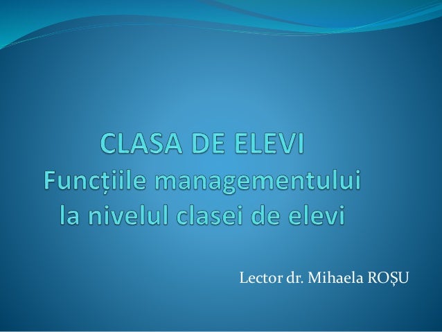 Intalnim o multitudine de definitii profesorul, ca manager al clasei de elevi, are rolul de a orienta si dirija resursele umane si în acest caz, membrii grupului au libertate de decizie în privinţa etapelor de desfăşurare a activităţii şi a. O foarte interesanta lucrare dedicata domeniului managementului clasei de elevi, a propus o diferentiere interesanta intre doua. Opereze cu conceptele specifice temei: