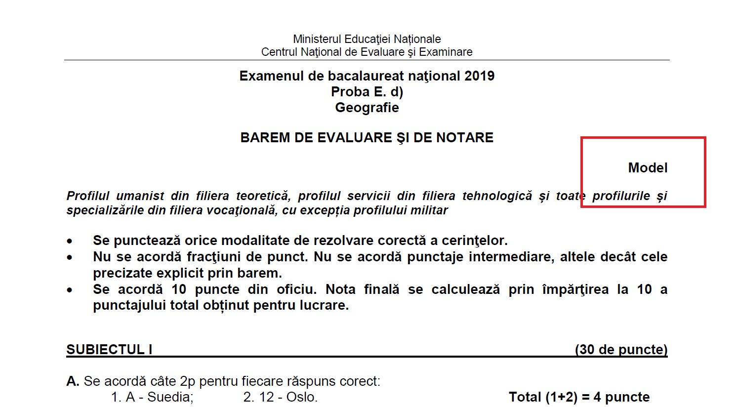 Bacalaureat 2019 subiecte geografie bareme edu.ro.